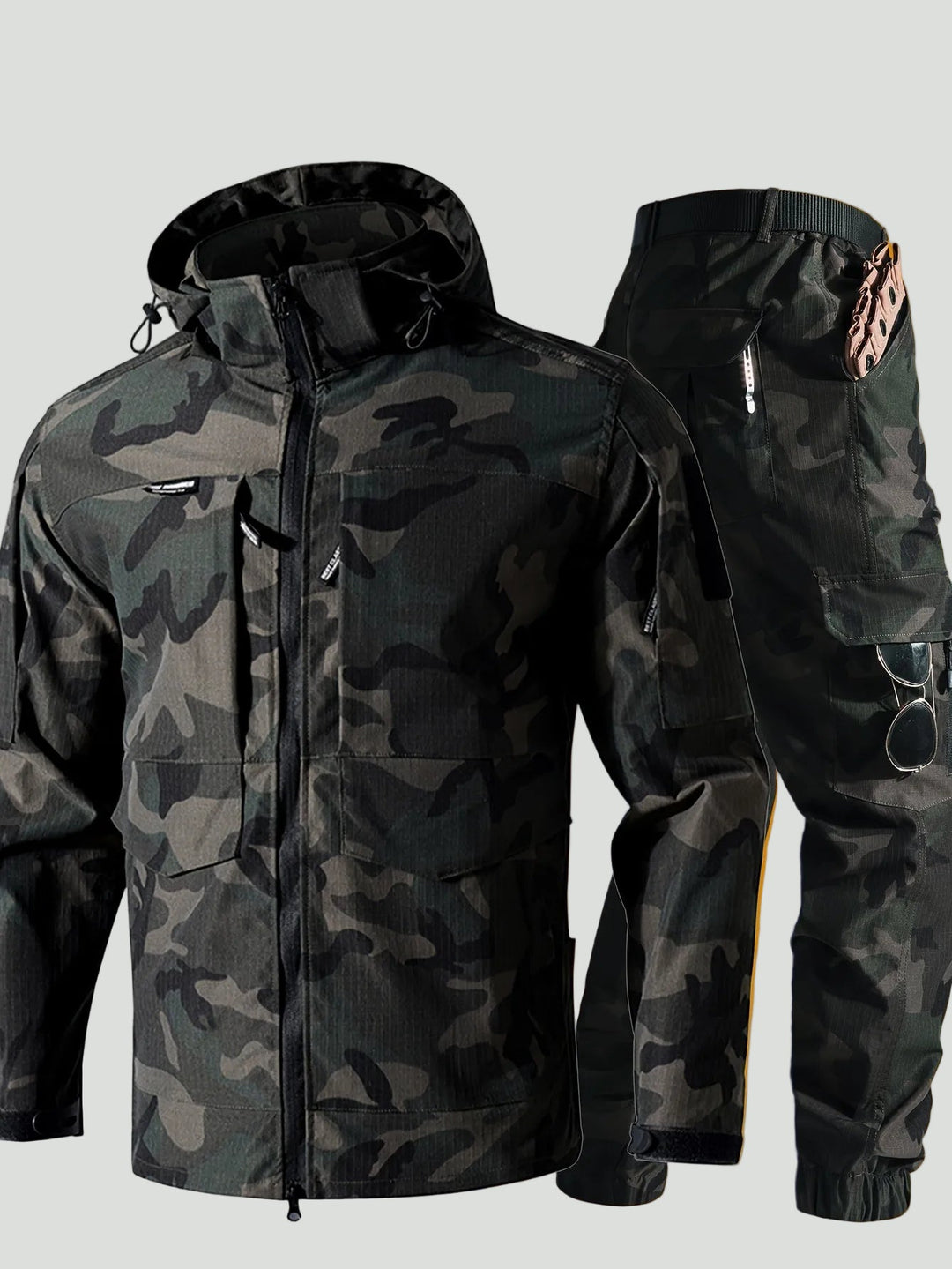 Men’s Outdoor Camouflage Jacket and Pants Set – Multi-Pocket Design for Active Use